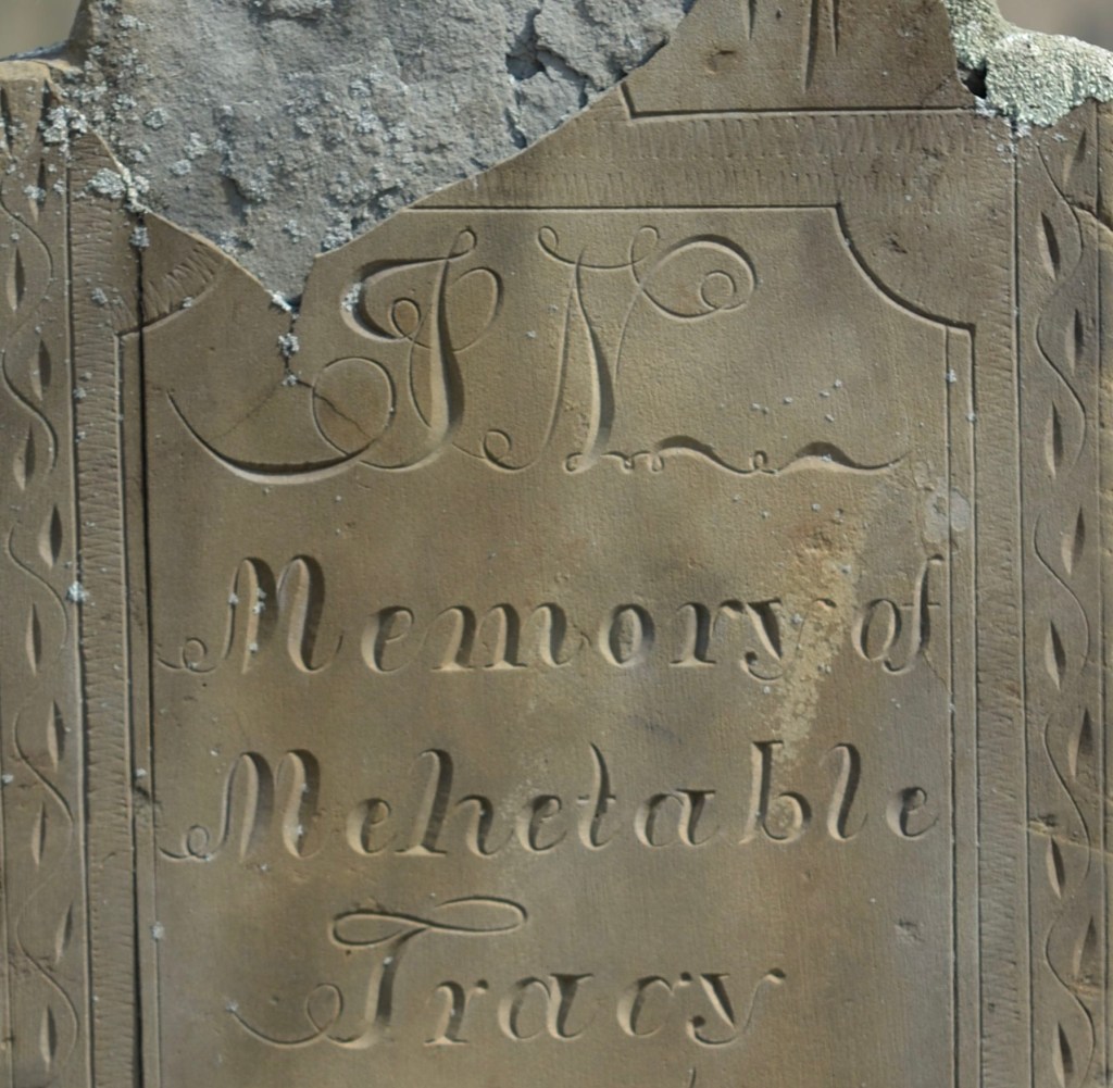 By 1770 Mehitable and her family were in Goshen, New York, about 20 miles west, in southern New York farm county. There Isaac died in 1786. As a widow Mehitable moved 100 miles northwest to Chemung County, New York, probably to live with one of her children, grandchildren. Mehitable wrote her will on April 26, 1814. She died March 19, 1820, she was 94 years old and is buried in the Wellsburg Baptist Cemetery. Her gravestone is inscribed, “Memory of Mehetable Tracy Died March 19t 1820 Et 94 Yrs 10 m & 26 d.”