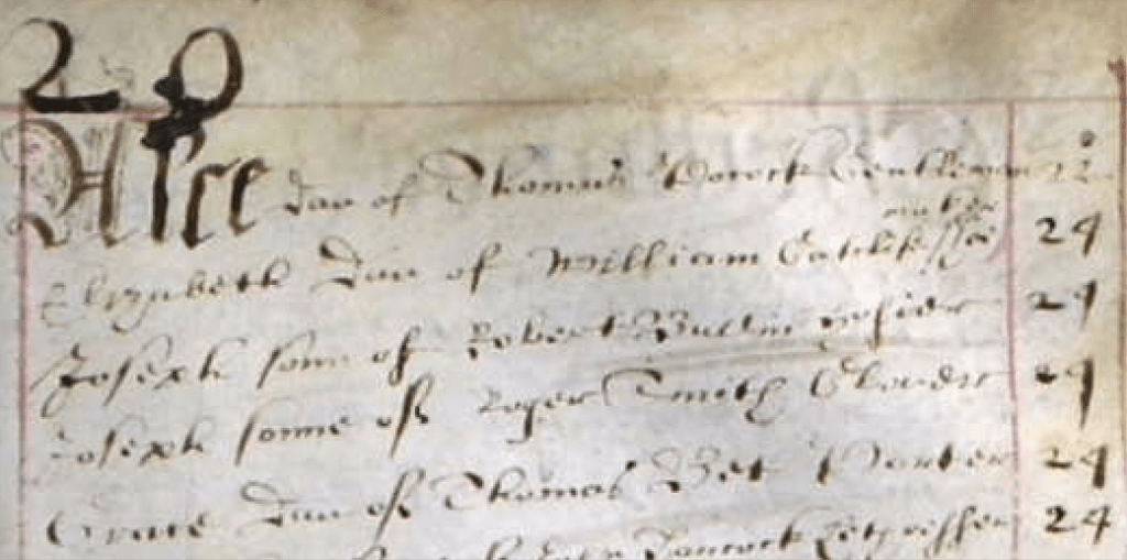 Benjamin Child was born in 1631 in Cotesbach, Leicestershire, England. Some family trees state this Child family has “genealogy going back to William the Conqueror”. There’s no records to show this.